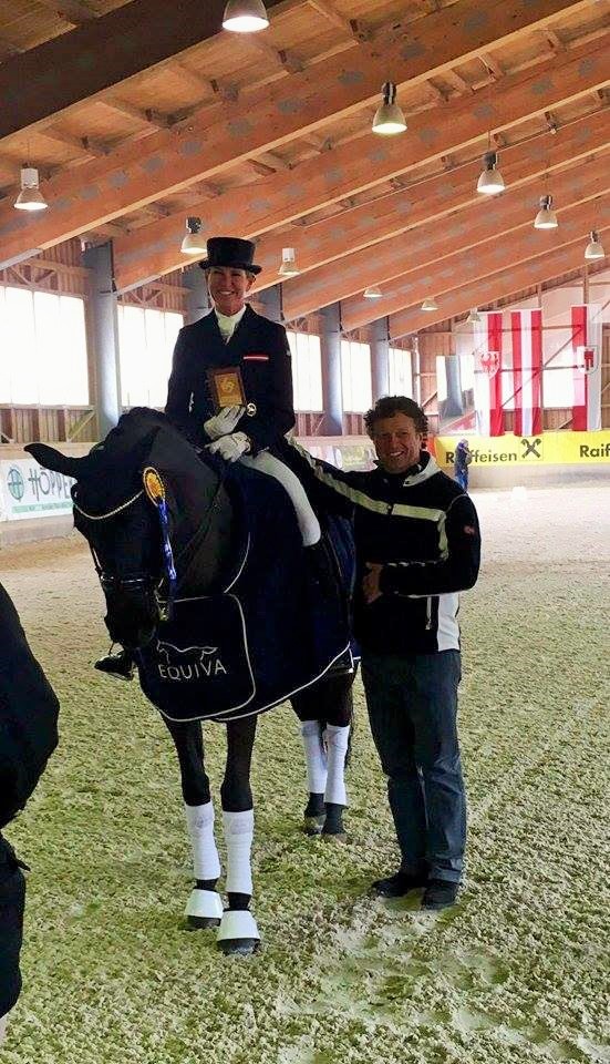 „Er ist ein echtes Schleifenpony!“, lachte Angela, als sie die Erfolge mit dem zehnjährigen DWB Hengst Don Shiraz zusammenfasste. Im Sattel des Blue Hors Don Schufro-Nachkommen holte sie nämlich nicht nur den vierten Platz in der FEI Junge Reiter Vorbereitungsprüfung Klasse S am Freitag (67,222 %), sondern freute sich am Sonntag im Prix St. Georges mit 69,605 % über den zehnten S-Sieg des Dänischen Warmblut Hengstes. Mit Neuzugang Umani (v. Unee BB) erritt die Pferdewirtschaftsmeisterin in den S-Bewerben zwei weitere Stockerlplätze: am Freitag war es mit 67,593 % der zweite Platz, am Sonntag mit 69,167 % der Dritte.