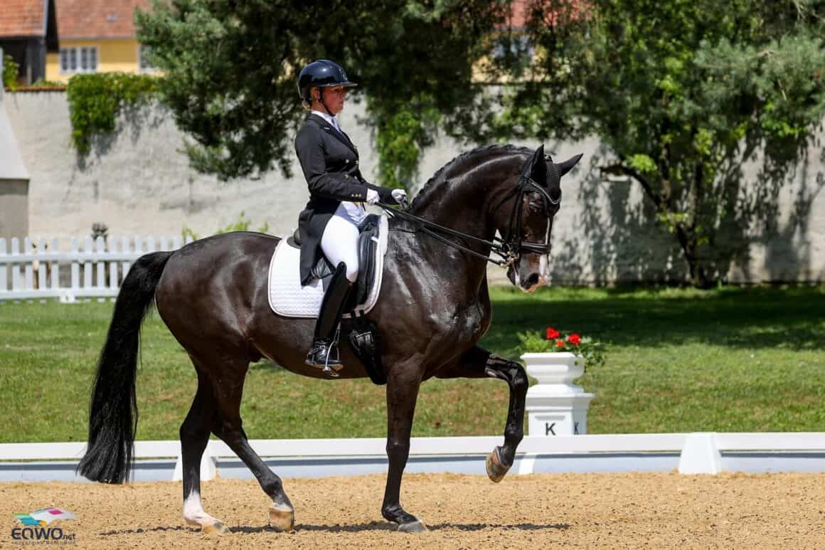 „Ich war heute wirklich sehr zufrieden mit ihm. Er hat mir richtig gut zugemacht, mit starken Punkten und sogar ein paar Neunern – das war beeindruckend. Natürlich gibt es noch Verbesserungspotenzial, vor allem bei der Priorisierung einzelner Elemente, aber insgesamt war der Ritt sehr schön und entspannt. Besonders positiv war seine Ausstrahlung – heute war er viel relaxter, was sich direkt auf das Gefühl im Sattel ausgewirkt hat“, resümierte die mehrfache Olympiateilnehmerin überglücklich und ergänzte: „Ich habe mich rundum wohlgefühlt. Die Kommunikation mit dem Pferd ist für mich ein zentrales Element: über Körpersprache, Vertrauen und stetige Aufmerksamkeit. Man gibt Sicherheit, lobt zwischendurch – das ist wichtig. Und heute hat einfach vieles gepasst. Ich bin richtig happy.“