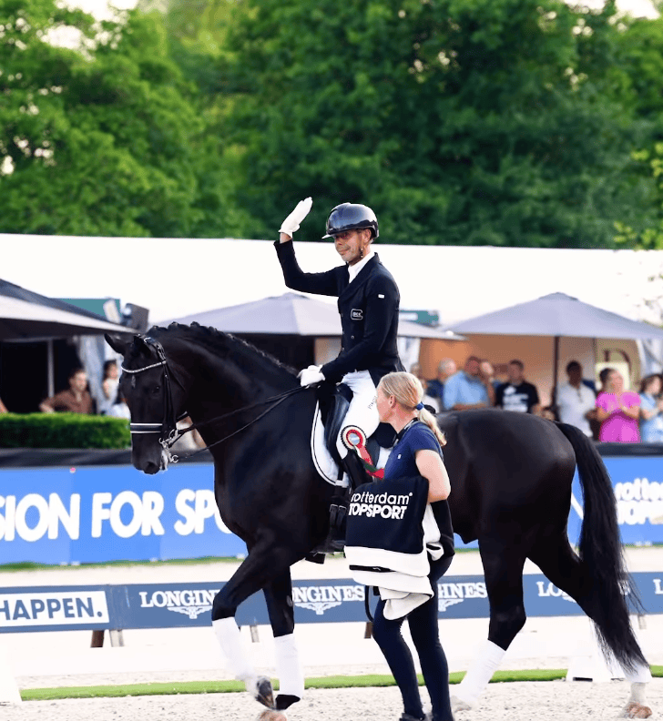 Bereits im Grand Prix am Donnerstag (19.6.) zeigte das Duo mit Personal Best von 72,739 % und Platz zwei hinter dem Weltmeister-Duo Charlotte Fry (GBR) und Glamourdale auf. Zum krönenden Abschluss lieferten die beiden den besten Ritt ihrer Karriere und gewannen die CDIO5* Grand Prix Musikkür von Rotterdam mit 81,905 %. Nach dem Ritt flossen Tränen, bei Hans Peter Minderhoud, dem Publikum und vielen Fans auf den sozialen Medien, die das sportliche Duo mit Standing Ovations und unzähligen Videos auf Social Media ehrte.