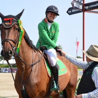 Mit „überragenden Sprüngen, überzeugender Technik und Bascule“, so Sportexperte Heinz-Jörg Wächter, präsentierte sich der diesjährige springbetonte Siegerhengst Mbappé. Der dunkelbraune Prämienhengst und Körsieger stammt von Ludger Beerbaum’s Ausnahmehengst Mumbai x Ramiro Z ab. Er steht im Besitz der Heinz & Martina Winter und wurde von Josef Burgstaller gezogen.