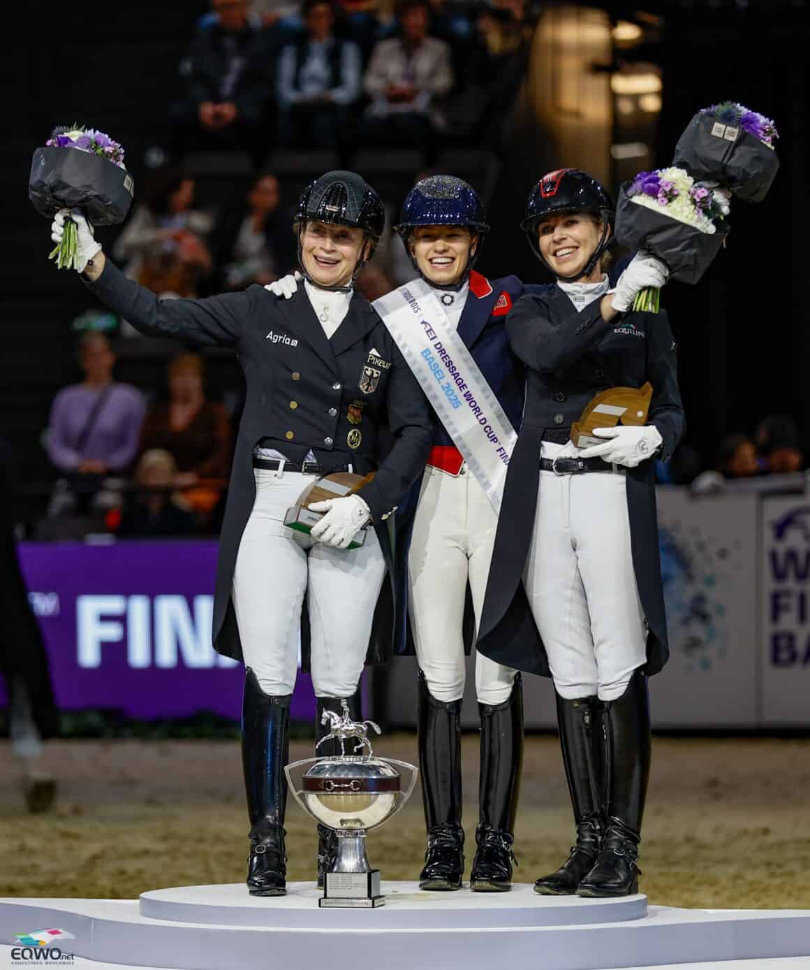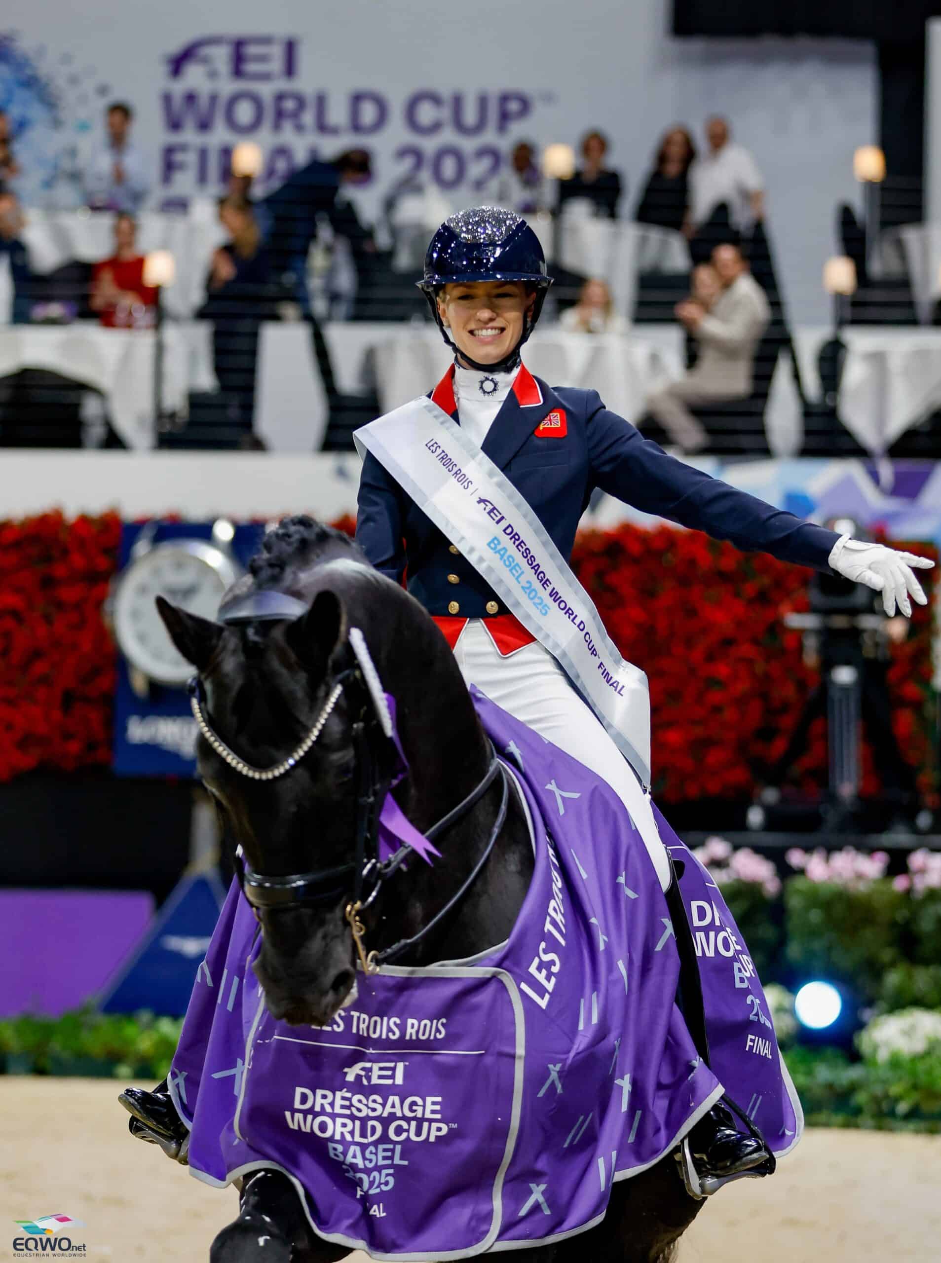 Dressur – Die Weltcup-Siegerin 2025 heißt Charlotte Fry (GBR)! Ihr Doppel-Weltmeister Glamourdale erhielt 88,195 % und bescherte der Britin einen haushohen und wenig überraschenden Sieg. Isabell Werth (GER) und DSP Quantaz holten Silber, Bronze ging an Isabell Freese (NOR) auf Total Hope OLD.