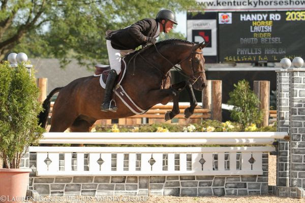 KentuckyHorseShowEvery now and then, Lavish wanders out of semi-retirement to play around in hunter derbies with rider David Beisel. On Saturday morning, Beisel taught a few lessons, loaded up the old pro and headed to the Kentucky Horse Park to compete in the $5,000 USHJA Hallway Feeds National Hunter Derby at the Kentucky Summer Classic on Saturday afternoon.