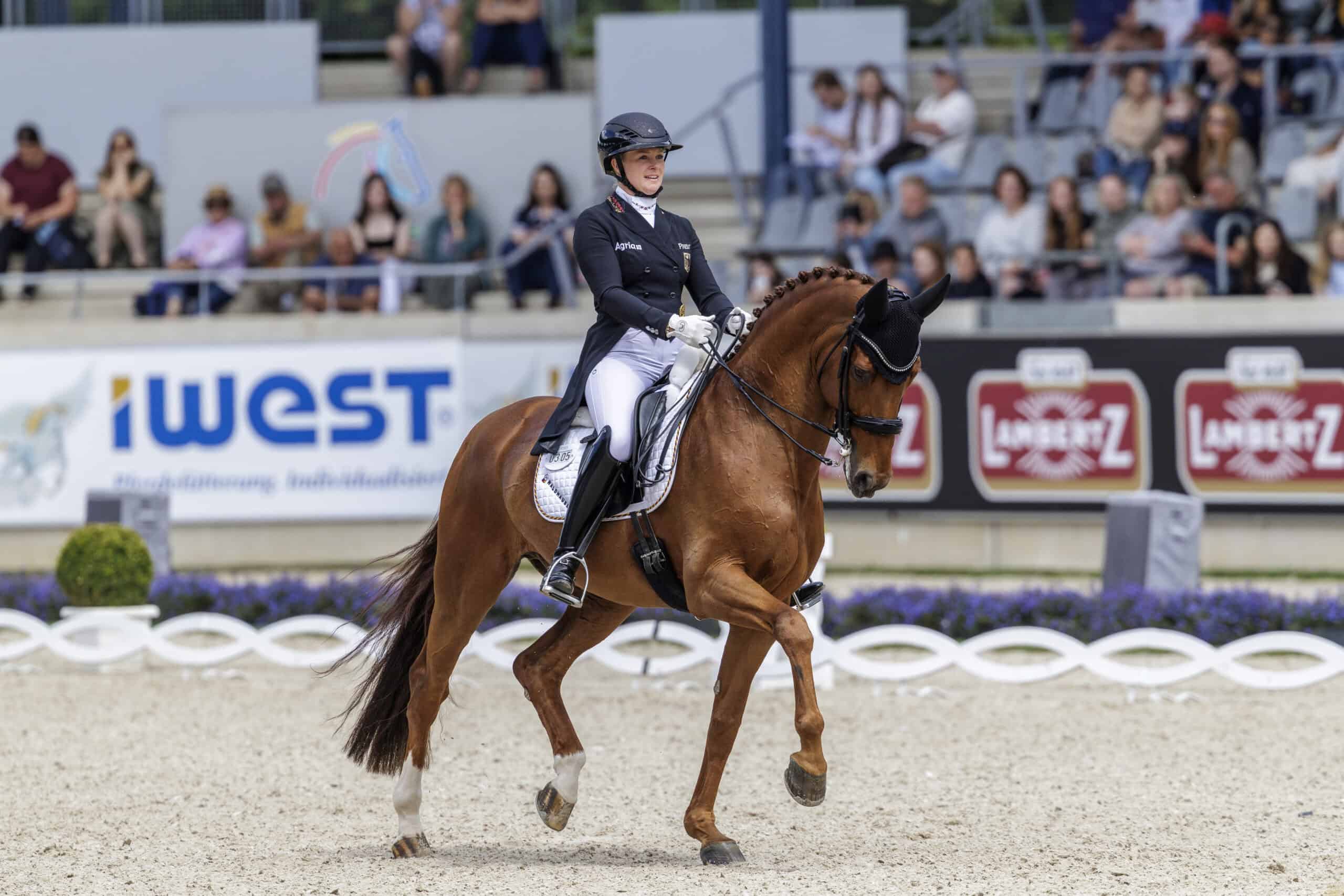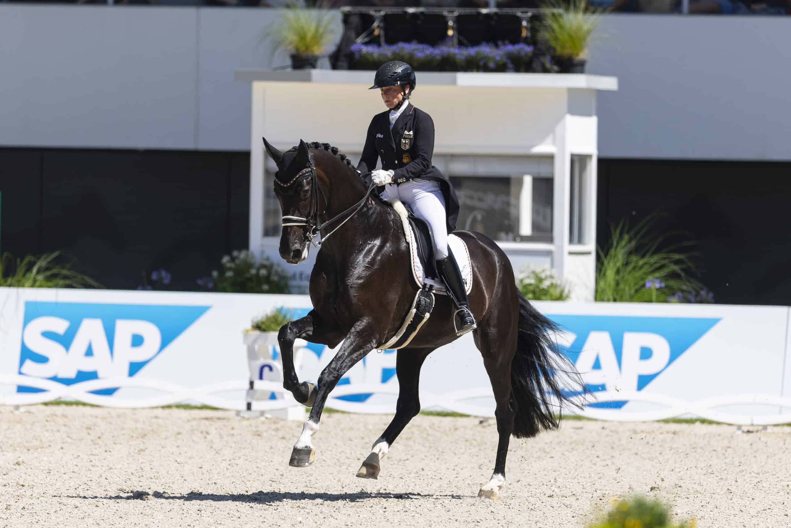 Obwohl das deutsche Team nach einem kurzfristen Ausfall von Sönke Rothenberger (GER) und Fendi mit nur drei Reiter:innen in den gestrigen (3.7.) Nationenpreis-Grand Prix startete, gab es kein Vorbeikommen an der Heimnation. Das Trio Katharina Hemmer (GER) mit Denoix PCH, Frederic Wandres (GER) mit Bluetooth OLD und Isabell Werth (GER) mit Wendy de Fontaine kam ohne Streichergebnis auf einen Gesamtscore von 232,065 Prozentpunkten. Mit über zwölf Punkten hielten sie die zweitplatzierten Belgier doch deutlich auf Abstand (219,804 %). Rang drei war gestern heiß umkämpft, denn die Nationen auf den Endrängen drei bis fünf lagen alle innerhalb von nur einem Prozentpunkt. Am Ende komplettierte das Team aus Schweden das heutige Siegerpodium (216,935) und verwies Großbritannien (215,892 %) und Dänemark (215,631 %) auf die Plätze.