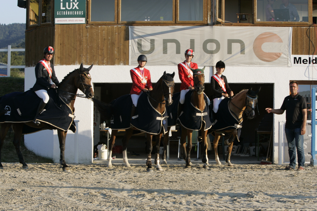 Besonders großen Jubel gab es bei der Siegerehrung der Allgemeinen Klasse, denn hier kamen alle drei Medaillenträger vom Veranstalterteam des URV Schloss Kammer! Fixkraft Teamreiter Peter Englbrecht entschied sowohl den Bewerb – die Attersee Trophy der Klasse S* – im Stechen für sich als auch die Union Bundesmeisterschaft der Allgemeinen Klasse. Im Sattel von Celine verdrängte er seinen Bruder, Mevisto Reiter und EM Teilnehmer Roland Englbrecht, mit Chambery auf die Silberposition in der Meisterschaft. Felix Koller überzeugte mit Activity B als Jüngster im Bunde mit Bronze.