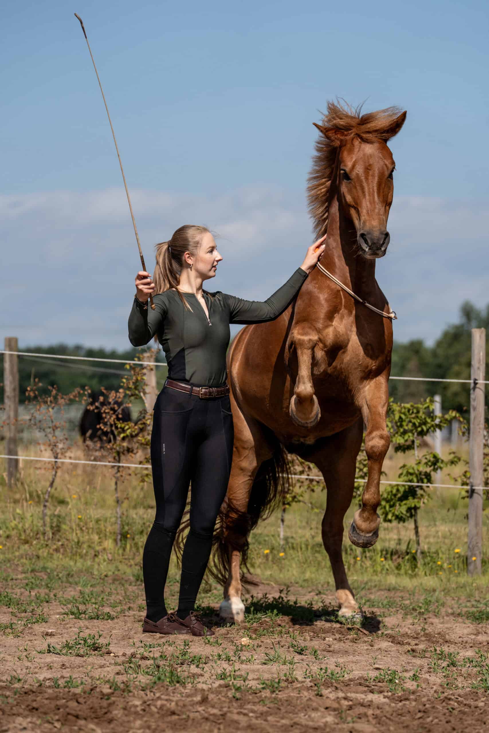 Doch bevor Ferdinand die Bühne betrat, gab und gibt es noch immer den unangefochtenen Star des Accounts: Frodo. Ihre gemeinsame Geschichte liest sich wie ein kitschiger Weihnachtsfilm, der eigentlich gar nicht gut anfing. Frodo stammte vom Kurgestüt Hoher Odenwald und war, wie Janina selbst sagt, ein „Überraschungsei“ – ein wilder Rassen-Mix, klein, und „nichts Halbes und nichts Ganzes“. Damals stand Janinas Reitbeteiligung im selben Stall wie Frodo. Nach ersten Begegnungen, als Frodo noch ein Jährling war, verloren sich die beiden wegen eines Stallwechsels aber aus den Augen. Erst zwei Jahre später traf Janina, damals Studentin in Wiesbaden und knapp bei Kasse, wieder auf das Pony. Es war die klassische „Liebe auf den zweiten Blick“. Obwohl Kopf und Konto laut „Nein!“ schrien, siegte am 16. Oktober 2017 das Herz. Eine Entscheidung, die sie als „absolutes Nervenbündel“ traf, aber bis heute keine Sekunde bereut hat. Frodo ist der Beweis, dass die besten Dinge im Leben oft ungeplant passieren. Und wer hätte damals gedacht, dass er Janina ab 2018 zu einem Job als Influencerin verhelfen würde?