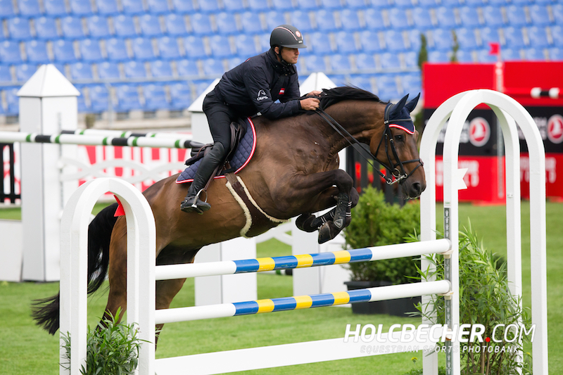 Max Kühner ritt als dritter Österreicher mit seinem 8-jährigen Holsteiner Hengst Chardonnay 79 (Clarimo x Corrado I) ein und danach brachte er noch seinen 15-jährigen Holsteiner Hengst Coeur de Lion (Coriano x Cassini I) an den Start.