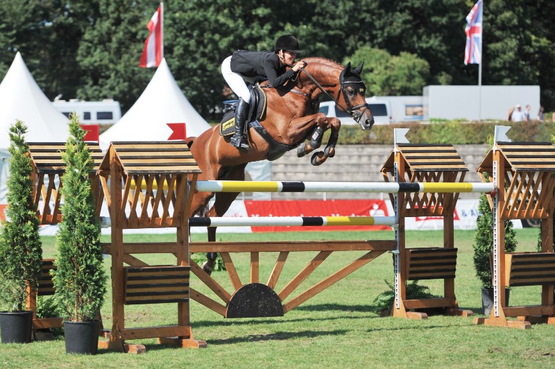 Mächtig Eindruck machten derweil in der Grand Prix-Arena Reitmeister Hubertus Schmidt aus dem westfälischen Borchen und der zwölf Jahre alte Trakehner Hengst Imperio. Der schicke braune Hengst, der 2008 in Verden Vize-Weltmeister der Jungen Dressurpferde wurde, siegte bereits am Freitag mit sagenhaften sieben Prozent Abstand im Grand Prix und ließ am Schlusstag des Internationalen Dressur- und Springfestivals einen souveränen Sieg im Grand Prix Special folgen. „Ich bin sooo zufrieden,“ freute sich Schmidt über seinen eleganten Sportpartner, der nach zwei längeren Verletzungspausen seit Monaten immer neue Erfolge feiert. „Eigentlich hat ´Impe´ die Hitze ein wenig zu schaffen gemacht, aber er hat super mit gemacht,“ so Schmidt, „manchmal ist er ein bißchen frech, aber das geht alles“. Tatsächlich beeindruckte der einstige Vizeweltmeister im Grand Prix mit über 77 Prozent, im Grand Prix Special mit 78,54 Prozent. Schmidt und Imperio standen als eines von mehreren Paaren auf der Reserveliste für die in zwei Tagen beginnenden Europameisterschaften in Aachen.