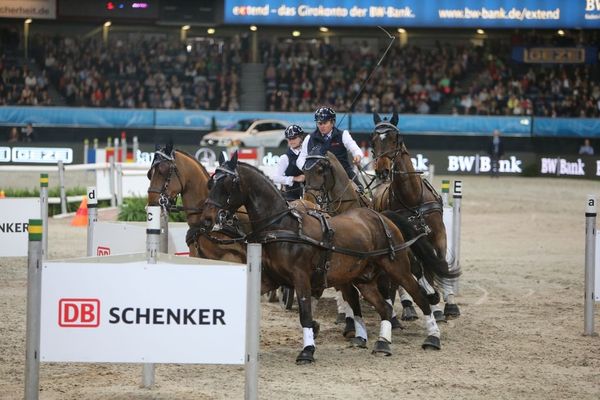Exell was one size too big for his opponents in Stuttgart. IJsbrand Chardon drove his team of Lipizzaner horses and one Dutch warm-blood horse, with which he has competed last season as well. The four-times World Champion had one knock-down in the first round but was fast enough to qualify for the Winning Round, which took place over a shortened course.