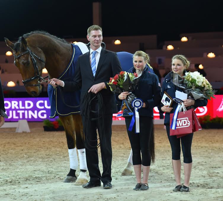 Nousse’s horse, Ede, was back in action again, this time carrying the brother-and-sister combination of Lucie and Simon Chevral from France who won the CVI in Bern (SUI) earlier this year and who were competing in their very first FEI World Cup™ competition. And their brave programme earned them today’s highest score of 7.772 but it wasn’t quite enough to overtake yesterday’s winners, the American sisters Cassidy and Kimberly Palmer.