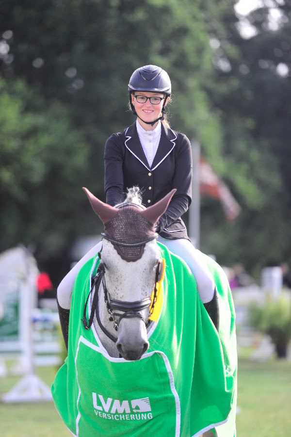 Katharina Wolf (RuFV Gestüt Steendiek) gewann mit ihrer Schimmelstute Biscaya die Stilspringprüfung Kl. L mit der Note 8,2. Dabei hatte die Juniorin erst kurz zuvor auf Anraten von Turnierchef Thomas Stahl für die Prüfung genannt. „Biscaya und ich hatten vor ein paar Wochen einen Unfall an einem Sprung,“ so die Reiterin, „und wenn man danach das erste Turnier reitet und auch noch gewinnt, ist man echt froh.“