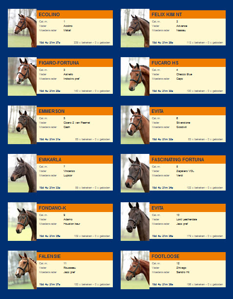12 talentierte Pferde wurden dafür von den vier niederländischen Experten Gertjan van Olst, Nol Gerritsen, Teus van den Brink und John Steeghs ausgewählt. Dann unterzogen sie sich einem sechswöchigen Trainingsprogramm im KWPN Zentrum. Eine eigene Website mit ausführlichen Informationen über die Pferde und den Online-Bietmodus wurde für diese Auktion vom 3. bis 13 Februar ebenfalls kreiert.