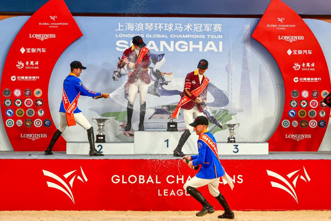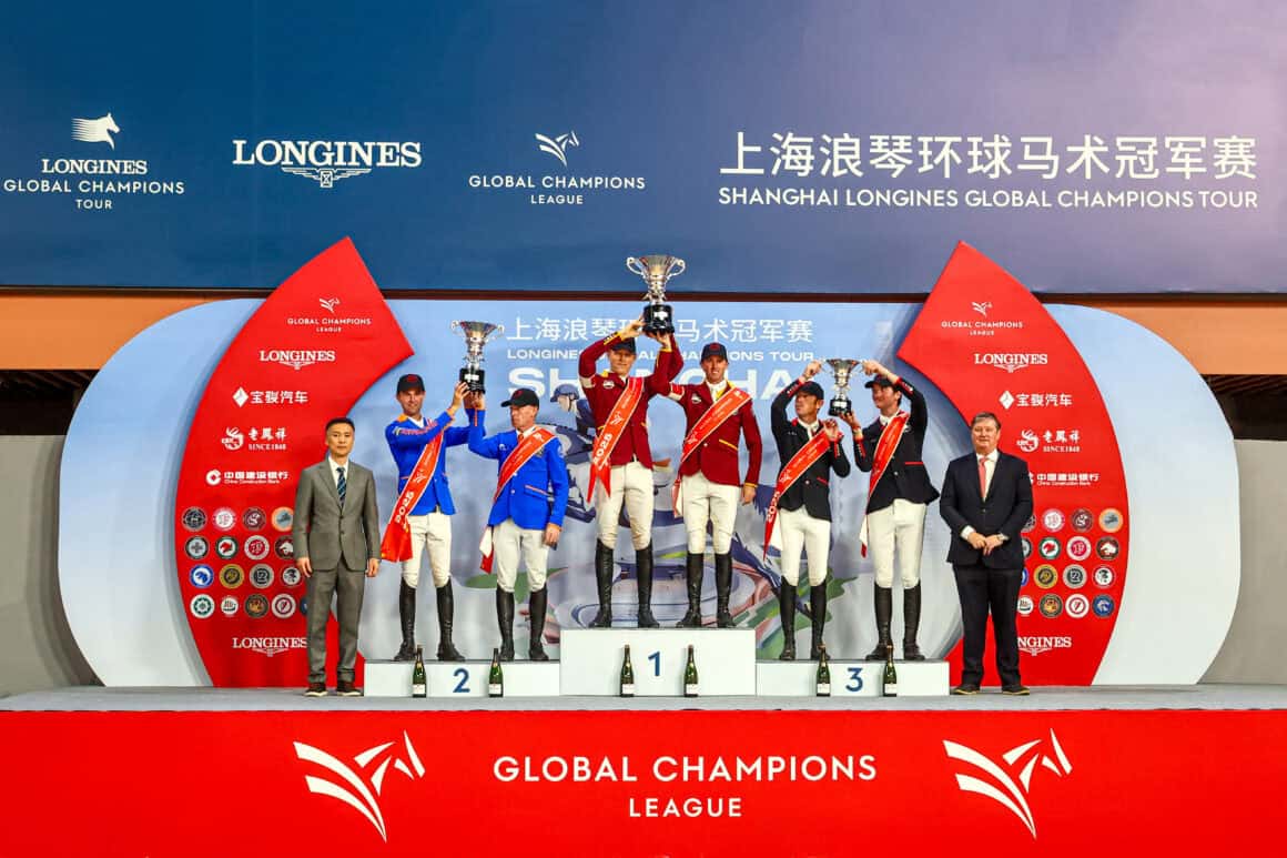 Nur wenige Wochen nach dem Sieg in Mexico City, mit gleich zwei Österreicher:innen im Team: Max Kühner (T) und Katharina Rhomberg (V), schlugen die Shanghai Swans bei ihrem Heimturnier wieder zu! Dieses Mal vertraten Max Kühner und Ben Maher (GBR) die rot-goldenen Teamfarben. Dabei blieb der Österreicher mit seinen beiden Pferden Julius Caesar und Up Too Jacco Blue null, Ben Maher hatte vier Fehlerpunkte am Konto. Insgesamt waren sie jedoch schneller als Marcus Ehning (GER) und Gilles Thomas (BEL) von dem Team Valkenswaard United. Die Schwäne liegen nun mit 71 Punkten knapp in Führung. Das Titelverteidiger-Team, Cannes Stars, sind ihnen mit 68 Punkten auf den Fersen, Valkenswaard United kommt mit 53 Punkten langsam näher.