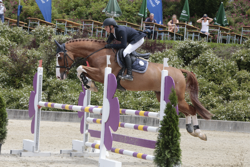In der 1.35 m hohen Klasse M konnten sich dann Fixkraftteamreiter Matthias Raisch und die elfjährige KWPN-Stute Zypria durchsetzten und schnappten Maximilian Schmid (GER), der diesmal im Sattel von Cavallero unterwegs war, den Sieg mit knapp 0.30 Sekunden Vorsprung vor der Nase weg. Über den dritten Platz freuten sich Salzburgs Nicole Rieger und ihr Emilion-Sohn Willem SW (0/76,49).