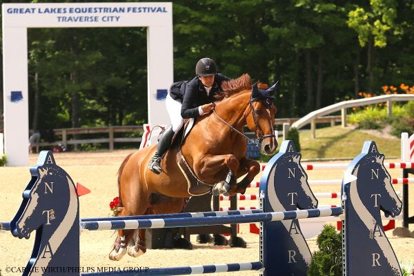 Traverse City, MI – July 17, 2015 – Lisa Goldman and Mary Goldman’s Centurion B bested a large field of horse and athlete combinations over a track built by FEI…