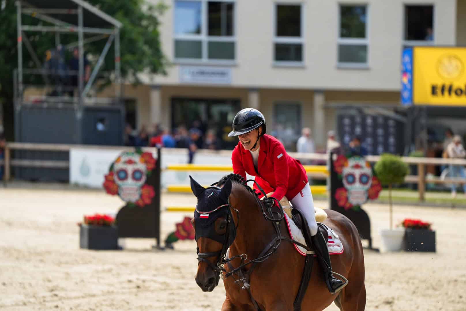 Die 20-jährige Antonia Weixelbraun (S) und ihr elfjähriger Holsteiner-Wallach Chaloubet v. Chaman glänzten dabei mit einer souveränen Nullrunde und sicherte sich damit unter 82 Starter:innen den 20. Rang – eine starke Leistung auf EM-Niveau! Ebenfalls fehlerfrei unterwegs war die frisch gebackene österreichische U21-Meisterin Emilie Spranz (NÖ) auf ihrem 14-jährigen Zangersheide-Hengst Coup de Coeur GP Madame Z, die mit ihrer stilistisch feinen Runde Platz 37 belegte. Carla Wanko (W) und Shqely belegten mit vier Fehlerpunkten, die sich zu der Zeit von 79.50 Sekunden addierten, Rang 46.