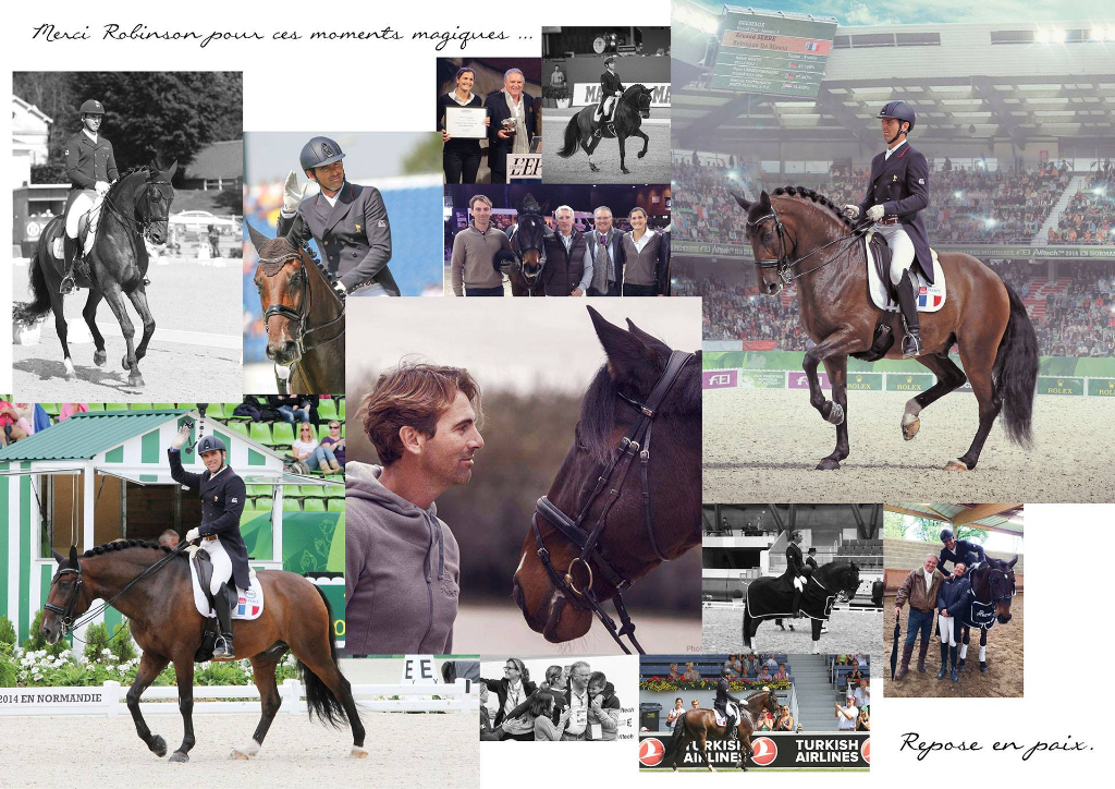Der elfjährige Robinson (Maestro JGB x Opus 72 MTV) war unter seinem Reiter Arnaud Serre (FRA) bei den Weltreiterspielen 2014 in Caen (FRA) ebenso dabei wie bei den Europameisterschaften 2015 in Aachen (GER). Sein letztes Turnier bestritt er Ende November 2015 in Madrid (ESP) und wurde vierter im Grand Prix Freestyle.