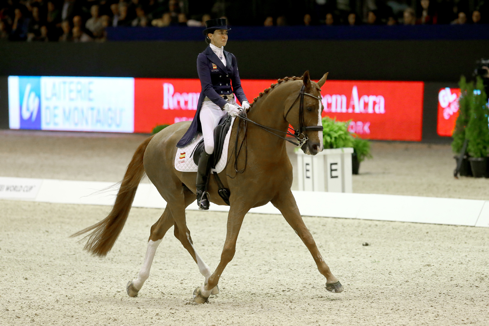 Her partnership with Delgado has been beset by injury problems for the horse over the last eight years, but somehow she kept faith with to the 14-year-old gelding and that faith has being repaid handsomely over the last nine months. The pair re-emerged onto the international stage in March and had just two competitions under their belt before taking that bronze medal in Aachen in August where she also helped her country qualify for the Rio 2016 Olympic Games. Together they present a beautifully balanced, forward-going picture. She said this evening, “with him it is always very harmonious, there is an understanding between us, I know how he is feeling and he knows me very well also.” Asked to compare Delgado to Beauvalais she said, “Delgado is better in piaffe, but they are both special because they give me everything they can. What they have in common is that they are both very good in their heads and they have big hearts, always wanting to go forward, always wanting to be with me and that’s a very wonderful feeling for any rider”, she said. Ferrer-Salat plans to compete at the next leg of the Reem Acra series in Stuttgart, Germany in three weeks’ time.