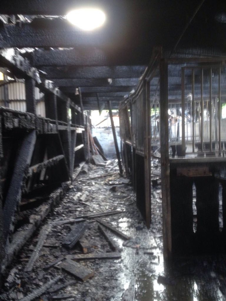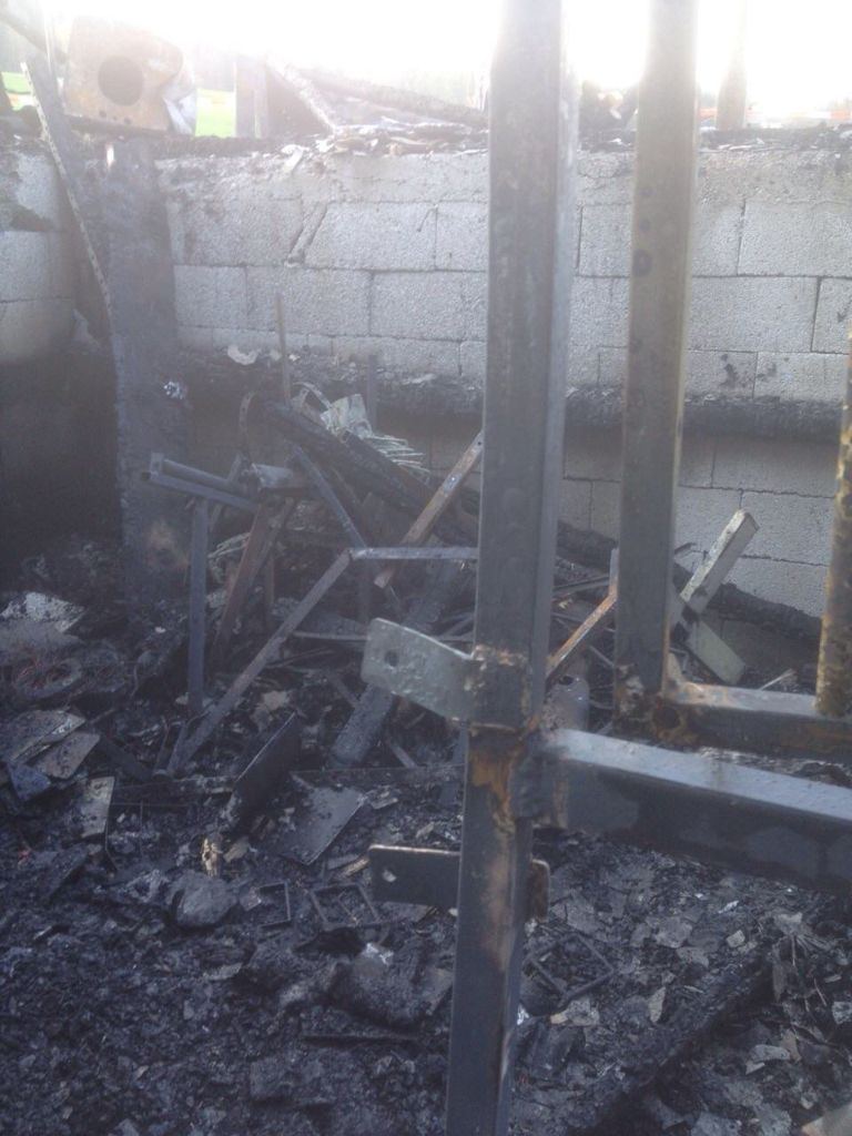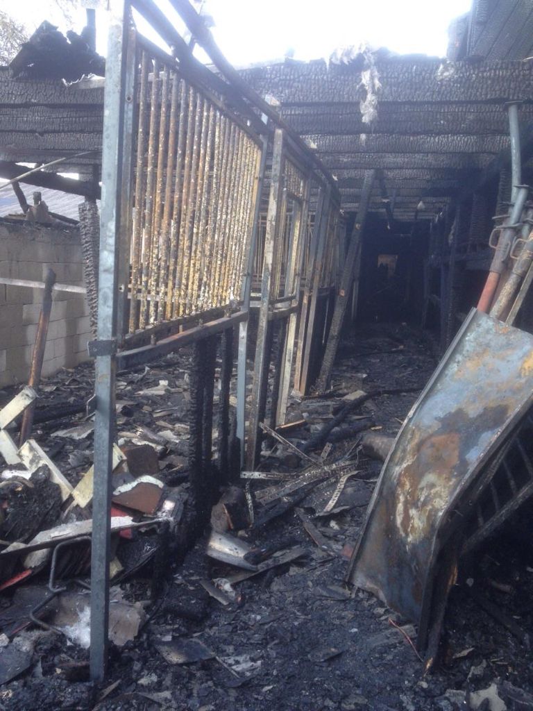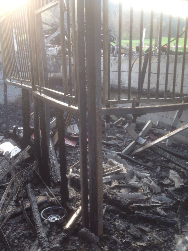30 der 60 Meter langen Halle sind vollkommen zerstört, ebenso sieben Boxen, welche direkt an der Halle angeschlossen waren. Auch unser gesamtes Lager mit Ausrüstung für die Pferde und Hindernismaterial wurde beim Brand vernichtet. Wir haben quasi nichts mehr. Ich kenne mich nicht aus, ob wir Teile der Halle stehen lassen können, oder  alles abreißen lassen müssen. Ob der Betonboden im Stall noch verwendbar ist, oder ob alles niedergerissen werden muss. Ich bin immer in Sorge, dass es wieder brennt. Wie es jetzt weitergehen soll, wissen wir nicht genau.“