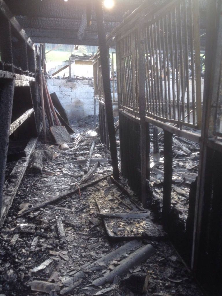 Der Brand konnte zwar rasch gelöscht werden, doch die Schäden des ersten Brandes sind enorm. Es wurde nicht nur so gut wie die komplette Halle sondern auch zahlreiche Boxen und das gesamte Hindernismaterial vollkommen zerstört.