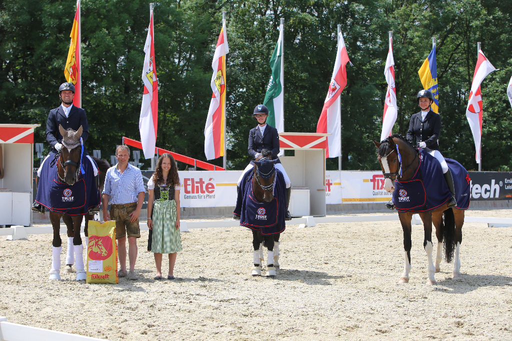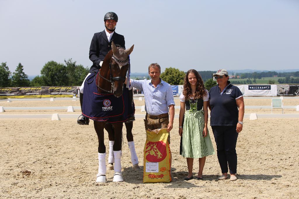 Das Highlight an diesem Dressurwochenende bildeten die Teilbewerbe der Elité Fixkraft Trophy der Klasse LM. Ganz klar die Nummer eins war hier Stefan Lehfellner vom Union Pferdesportclub Dornleiten. Im Sattel seines Pferdes ‚Der Romantiker‘ entschied er alle drei Wertungsprüfungen der Elité Fixkraft Trophy für sich und krönte sich mit Wertnoten von 67,048 %, 70,541 % und 73,377 % zum überragenden Sieger.