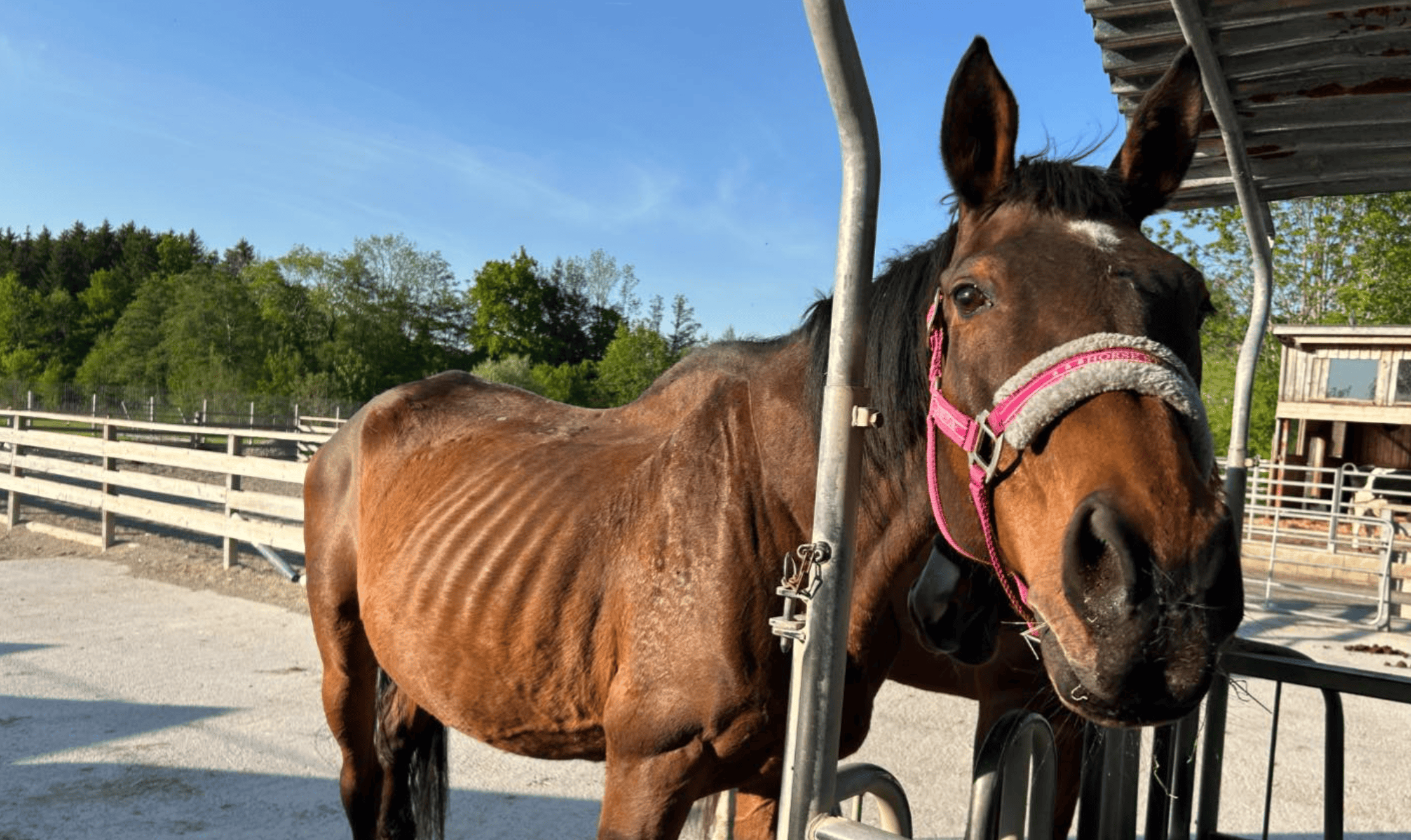 Zwei der Pferde wurden zum Tierschutzhof der Pfotenhilfe Lochen in Oberösterreich transportiert, wo sie nun tierärztlich versorgt werden, denn die sehr verängstigten Pferde sind in einem schlechten Zustand: Die Tiere sind stark abgemagert, viele von ihnen sind am ganzen Körper mit Pilz übersät. Von schweren Augenentzündungen über stark eingerissene und ausgebrochene Hufe, ein schlechter Zustand der Zähne bis hin zu Lahmheiten, einem Tumor und einem stark geschwollenen Fesselgelenk ist leider alles dabei.