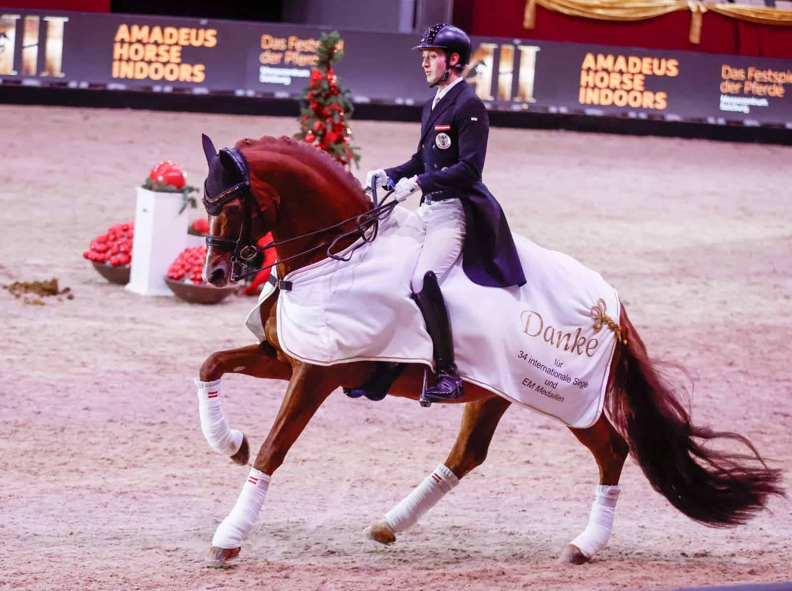 Dressur – Heute wurden auf der Amadeus Horse Indoors zwei Ausnahme-Pferde im österreichischen Nachwuchs-Dressursport verabschiedet: Die 19-jährige Sanibel trug Lilli & Oskar Ochsenhofer, sowie zuletzt Hannah Dearing-Schumach durch insgesamt acht Europameisterschaften. Prämienhengst Bodyguard holte unter Paul und Florentina Jöbstl insgesamt fünf EM-Medaillen und darf mit 16 Jahren im Kreuttal in den sportlichen Ruhestand gehen.