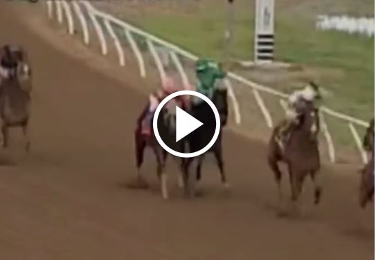 Im zwölften Rennen des Tages kämpften Freddy Jose Manrrique-Guerrero auf Oliver G und Natalie Turner auf War Chirp um einen Platz an der Spitze. Dabei hat Manrrique-Guerrero seiner direkten Kontrahentin offenbar einen Stoß mit dem Ellenbogen versetzt. Diese ließ das nicht auf sich sitzen und verpasste ihm im Gegenzug drei Hiebe mit ihrer Peitsche – und das alles im Renngalopp.